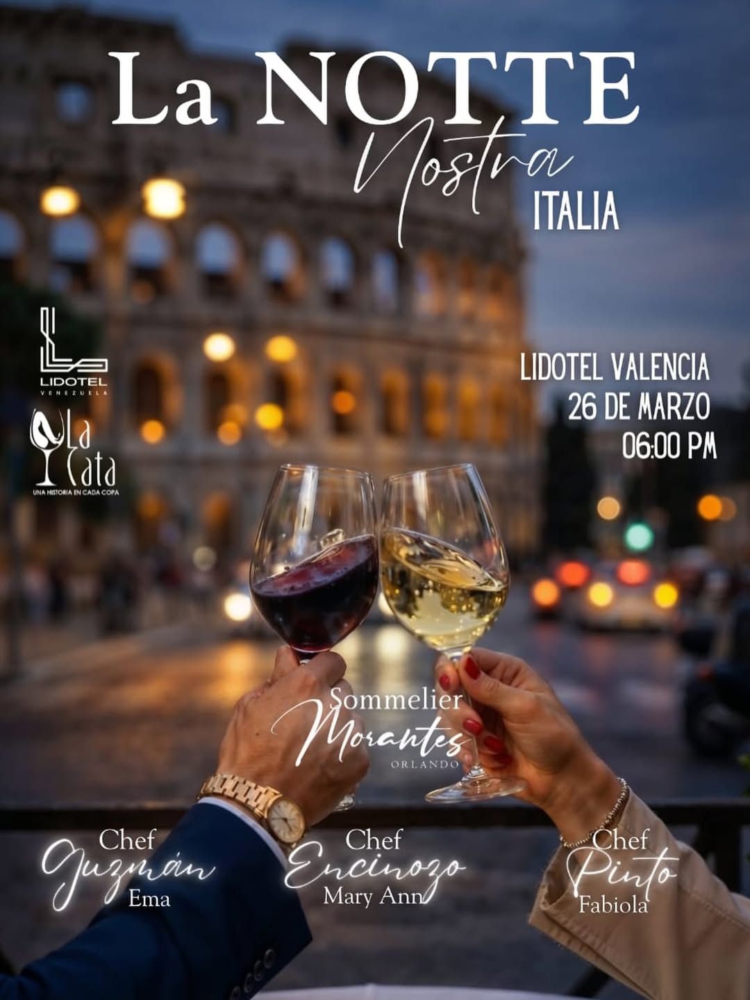 La Notte Nostra: Italia será una noche temática en Lidotel Valencia con cata de vinos, gastronomía italiana, música en vivo y experiencias especiales alrededor de la mesa. Habrá Aperol Spritz de bienvenida, rosso italiano, prosecco, armonías gastronómicas, sorteos y una cata dirigida por el sommelier Orlando Morantes.
