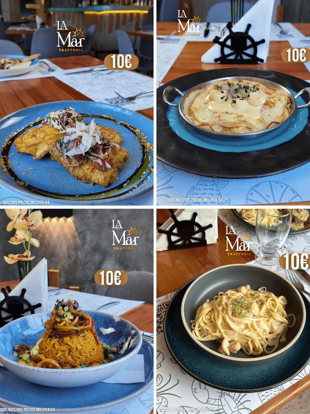 La Mar Trattoria ha creado La Semana La Mar, que comprende de un menú especial de 10 de sus mejores platos un costo de 10 euros por 10 días. Estos son los platos: